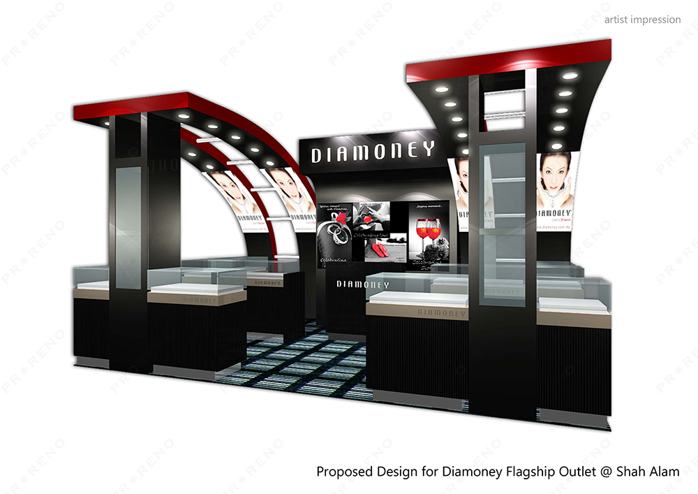 We renovated retail outlet for Diamoney to showcase their jewellery products including all the display showcases and visual decorations. Apart from retail outlet renovation, we also setup their display booth in various exhibitions.